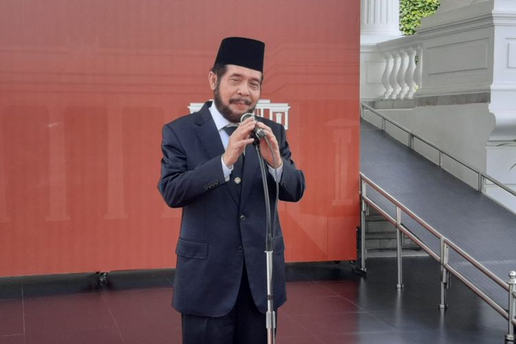 Ketua Mahkamah Konstitusi (MK) Anwar Usman memberikan keterangan pers usai menghadiri pengucapan sumpah hakim MK Guntur Hamzah di Kompleks Istana Kepresidenan, Jakarta, Rabu (23/11/2022). (KOMPAS.com/Ardito Ramadhan)