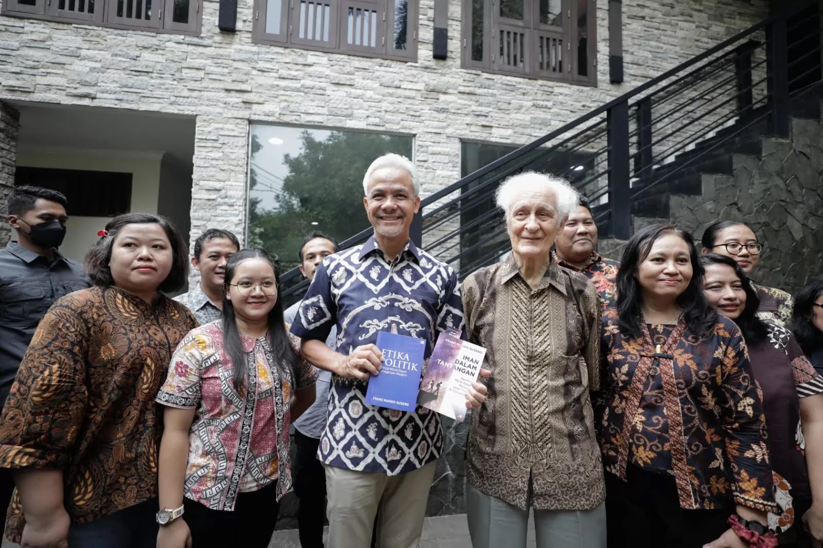 Milenialnusantara – Calon presiden nomor urut 3 Ganjar Pranowo berdiskusi tentang kondisi bangsa Indonesia saat ini dengan Guru Besar Filsafat Moral, Romo Franz Magnis Suseno atau akrab disapa Romo Magnis di Sekolah Tinggi Filsafat Driyarkara, Jakarta, Jumat (24/11). Romo Magnis pun mendoakan calon presiden Ganjar Pranowo dalam kontestasi Pilpres 2024.