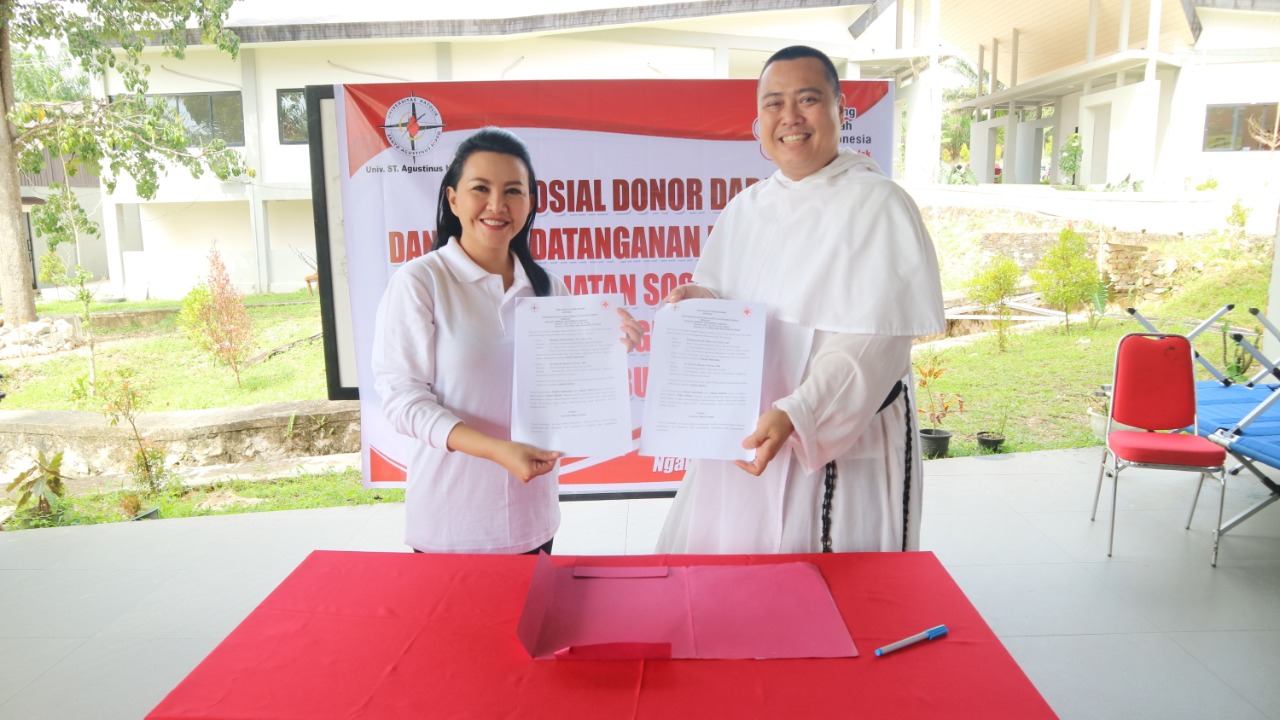 Ketua PMI Kabupaten Landak Karolin Margret Natasa mengatakan bahwa MoU tersebut merupakan tindak lanjut dan respon yang cepat dari Universitas Katolik Santo Agustinus Hippo sehingga dapat terwujudnya kegiatan sosial yagn dilakukan secara bergotong royong.