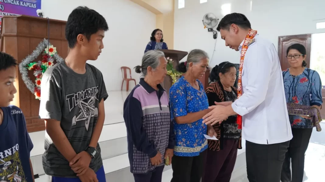 jaringanmilenialnusantara.id – Bupati Kapuas Hulu Fransiskus Diaan menyerahkan tali kasih kepada Yayasan Kemah Kasih Uncak Kapuas. Bantuan ini ditujukan kepada anak yatim dan kurang mampu. Kegiatan tersebut di laksanakan di GKE Bukit Sion Kecamatan Badau, Kapuas Hulu, pada Rabu (30/11/2022).
